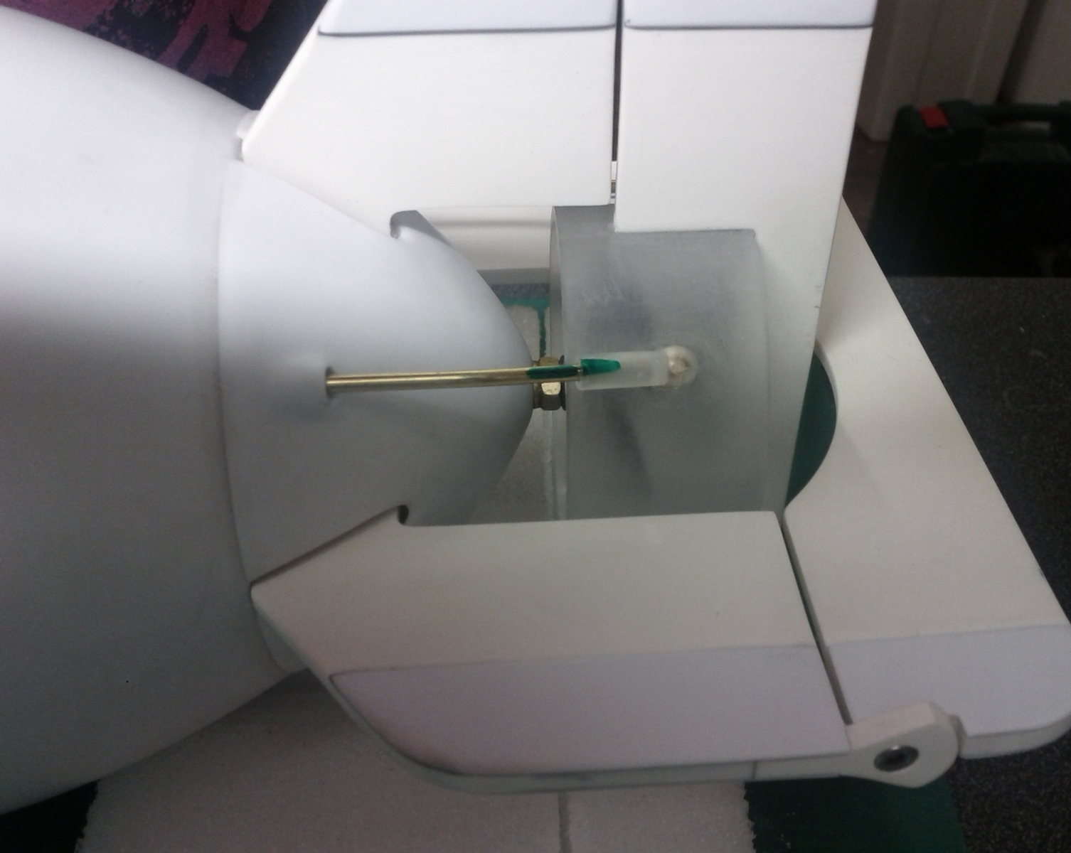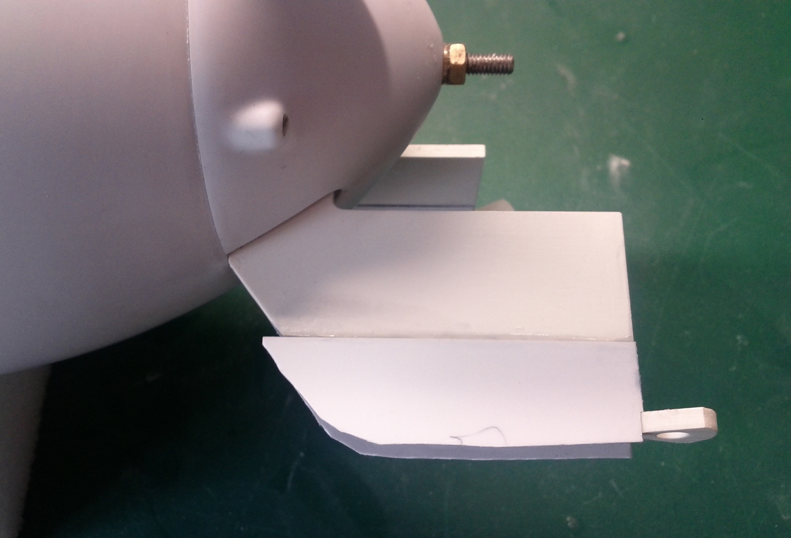 Voilà pour l'historique de la déco, concernant le montage du Kit, seul deux modifications ont été apportées au Kit, tout d'abord sur les gouvernes. Si l'on suit à la lettre la notice, elles ne seront plus démontables ; j'ai préféré modifier un peu le kit pour pouvoir les rendre amovibles. Pour ce faire, J'ai d'abord renforcé l'épaisseur des gouvernes avec du plasticard de 0.8mm, puis j'ai percé un trou de 2,2mm de diamètre dans l'épaisseur des gouvernes. J'ai ensuite vissé des BTR M2,5 ; la tête de vis faisant office de charnière. Cela a l'avantage de rendre les gouvernes démontables au cas où...